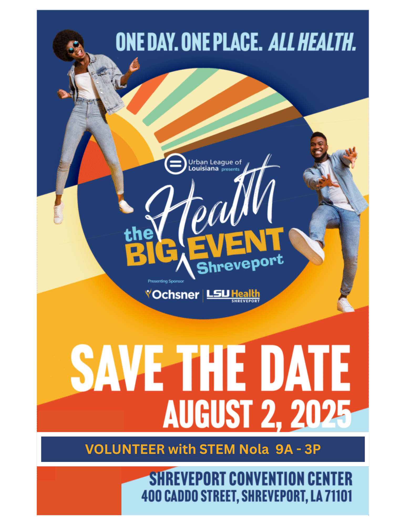 The Urban League of Louisiana presents the Big Health Event along with presenting sponsor Ochsner Health. This event will promote health and wellness for adults and children to positively impact families in Louisiana. STEM Nola is proud to be joining this initiative with 30 of our award winning STEM activities! Join us in bringing science, technology, engineering, and math to life for K-12 students in this community.