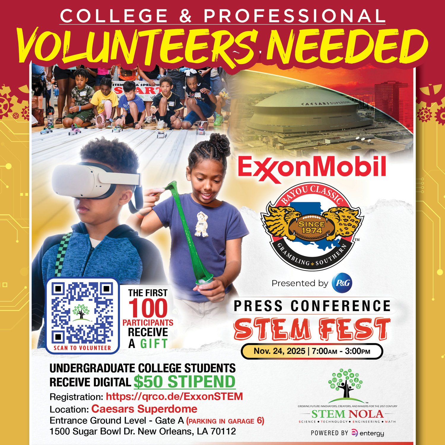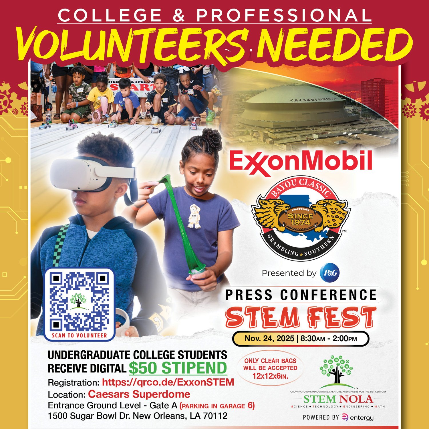 BAYOU CLASSIC STEM FEST VOLUNTEER SCHEDULE